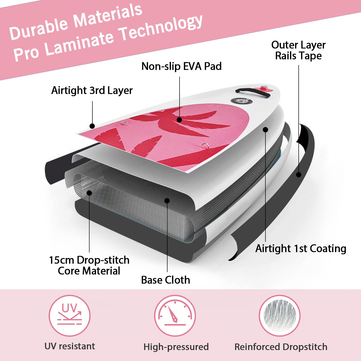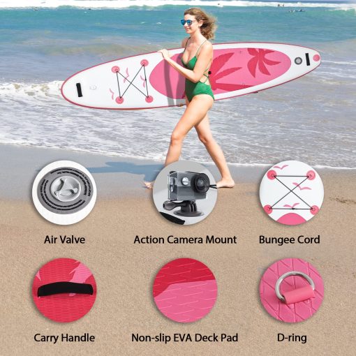 YU YUSING Planche de Paddle Gonflable de qualité supérieure avec pagaie réglable, Pompe, Sac à Dos, Laisse, Base GO-Pro, Sac étanche pour Adultes, enfantsadolescents (Rose)